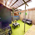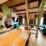 Jungle Style Lodge With Jacuzzi ,Sauna And Garden Near Amsterdam biedt gasten een terras, een keuken en een woonkamer, evenals modern comfort zoals airconditioning. Om uw comfort te garanderen is er een bubbelbad in dit appartement.